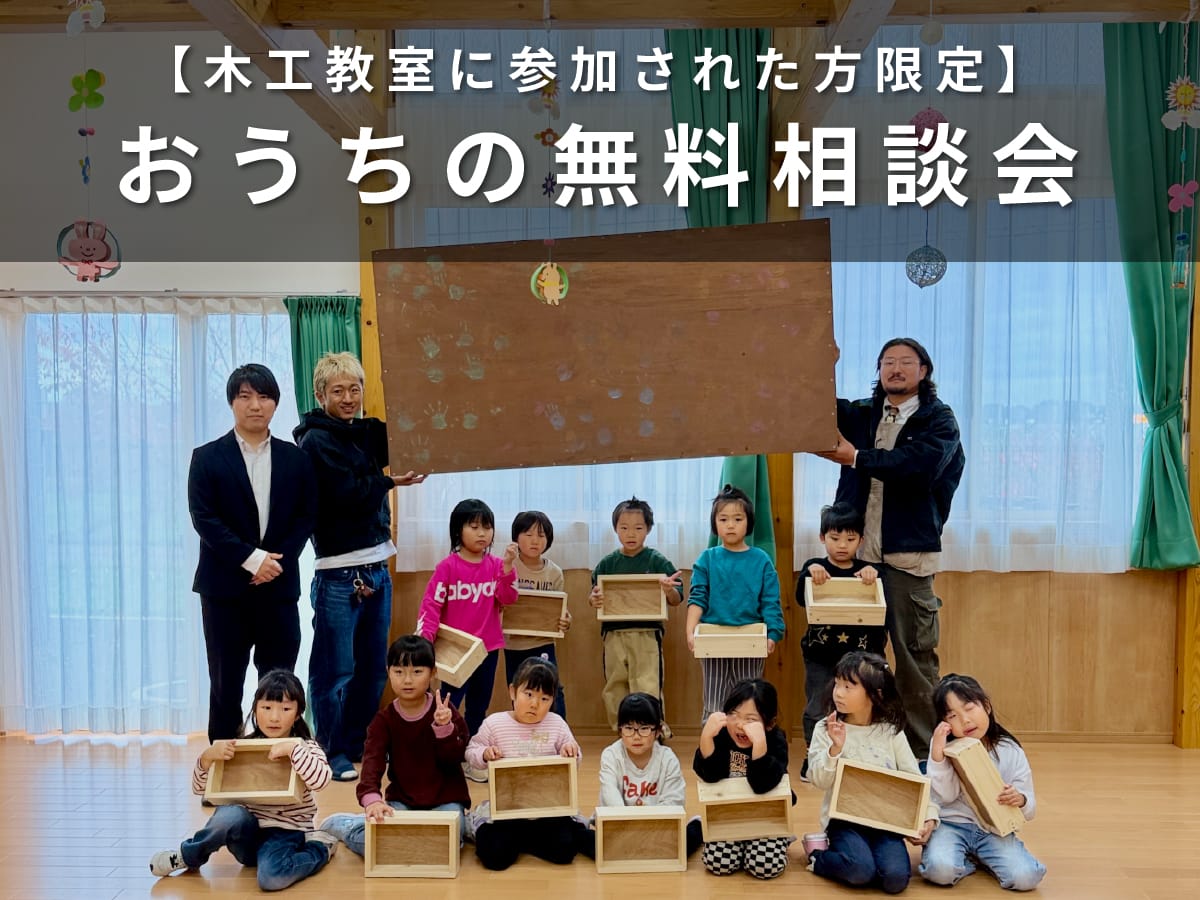 さて、イベント後、先生方や保護者の皆様から「家づくりのことも、もっと気軽に聞けたら嬉しい」というお声をいただきました。そこで、木工教室にご参加いただいた皆様だけをご招待し、「おうちの無料相談会」を開催させていただくことになりました!