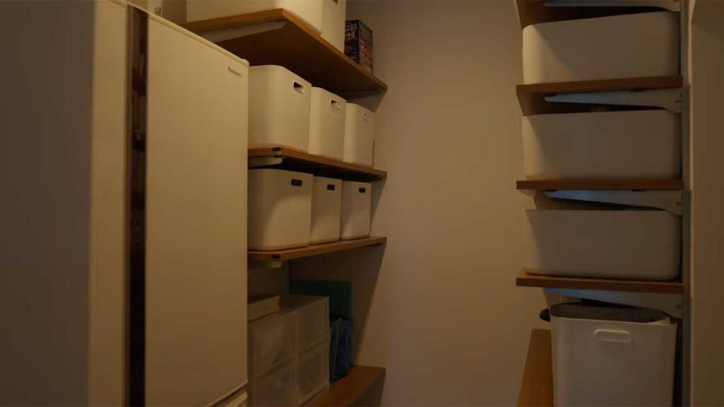 一番のポイントは、キッチンの冷蔵庫をリビングから見えないようにしたことです。「冷蔵庫は生活感が出るので、パントリーの中に隠してしまいましょう」と沼尾さんに提案してもらいました。消耗品もそこにまとめているので、子供たちが自分でティッシュを取ってきてくれるようになりました。「ママ、ティッシュがない!」という叫び声がなくなったのは、本当に大きな変化ですね。