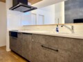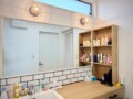 洗面はモノトーンでまとめシンプルかつ上質な雰囲気に。ワイドなカウンターに見せる・隠すをバランスよく配置。毎日の身支度が気持ちよく整います。