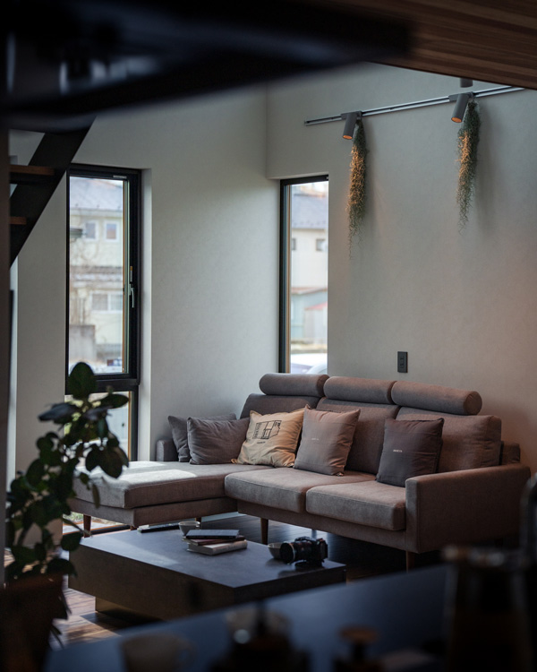 鉄骨階段や光の演出を楽しみながら、断熱等級6の圧倒的な性能が、冬の厳しさを忘れさせる開放的な暮らしを支えます。